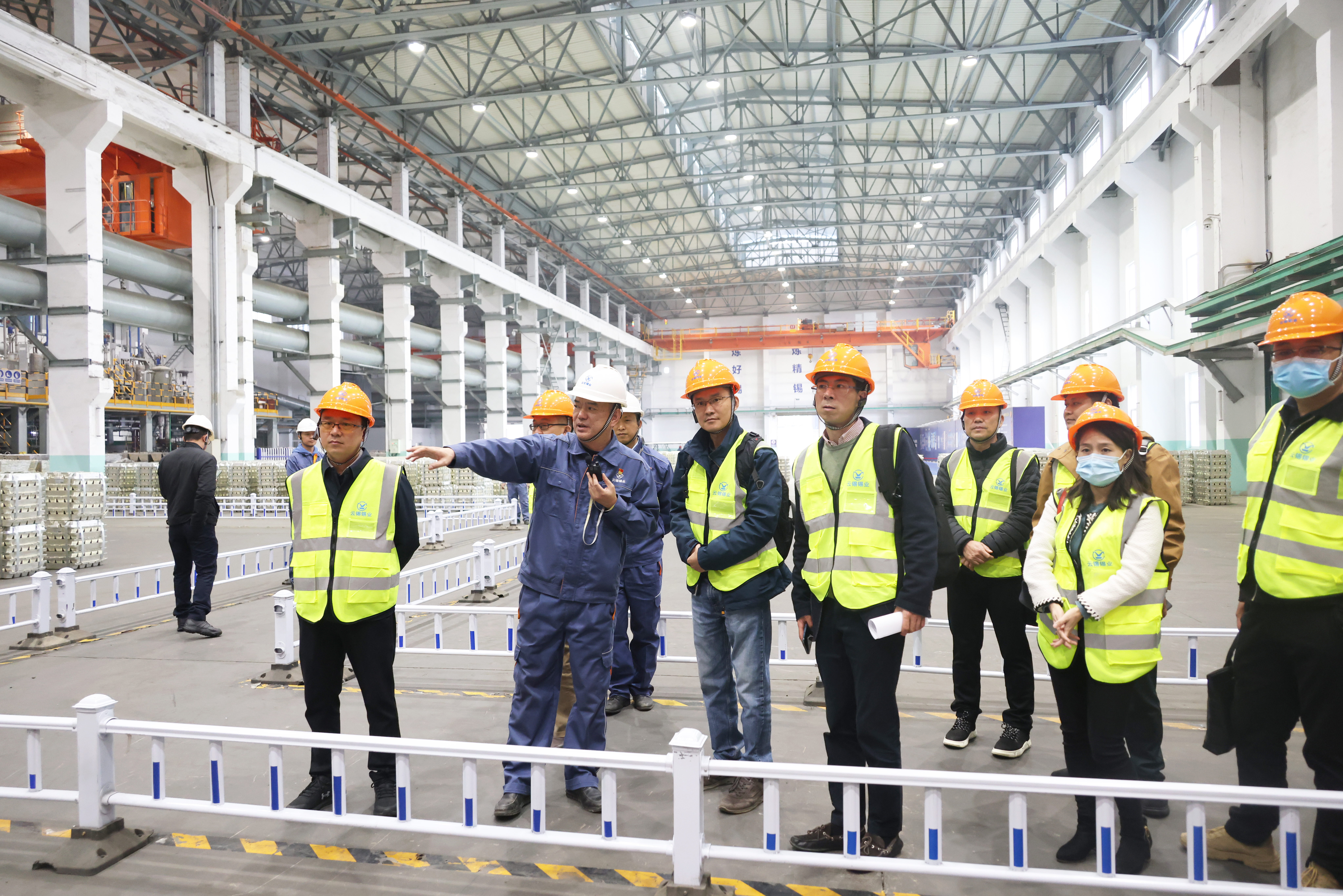 在锡业分公司,调研组详细了解锡冶炼的历史沿革、建设背景、产能产量、设计定位、工艺技术、智能化工厂建设、绿色发展理念相关情况,并先后到熔炼车间顶吹炉,精炼车间主控室、电热连续结晶机、直线浇铸机等生产现场,实地感受锡冶炼绿色转型升级的全新工艺流程、自主创新与引进消化吸收再创新相结合的先进技术装备。