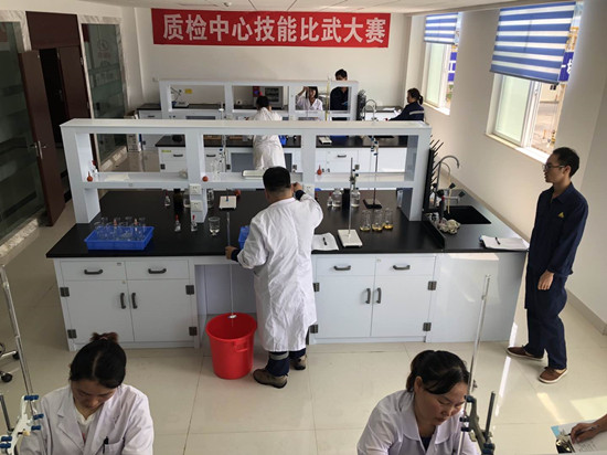 本次的岗位技能比武竞赛分为理论和实操两部分。理论考试紧紧围绕着岗位应知应会、质量管理、化验分析专业等内容。实操环节以遵守操作规程、注意安全事项为前提,比质量、比规范操作、比工作效率。比赛中,选手们拿到样品后,从称取样品→溶解样品→精准转移→定容→分析样品、标定标准溶液及清洗操作器皿、清理操作台面等,这每个细节步骤都是环环相扣,绝不允许中间有任何差池。大家动作娴熟、有计划性地操作着每个细节,并按时出具精准的数据,有效地指导车间生产。