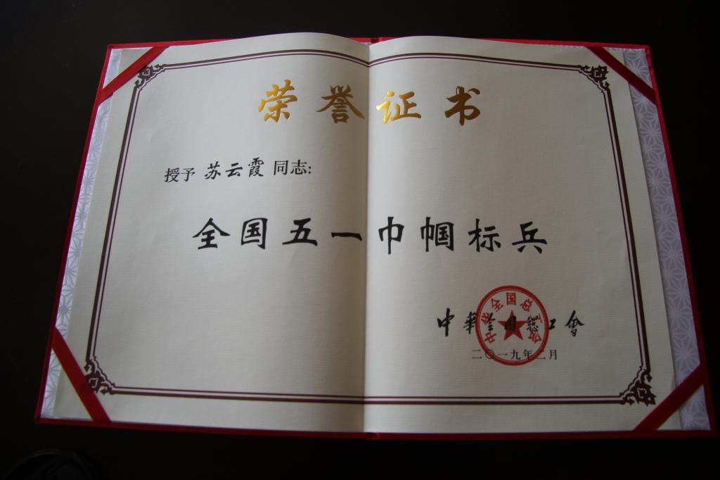 如今,苏云霞同志获得了中华全国总工会授予“全国五一巾帼标兵”称号,更是激励了广大女职工立足本职、爱岗敬业、追求卓越、争创一流,用生命奏响“中国梦劳动美”的动人乐章。