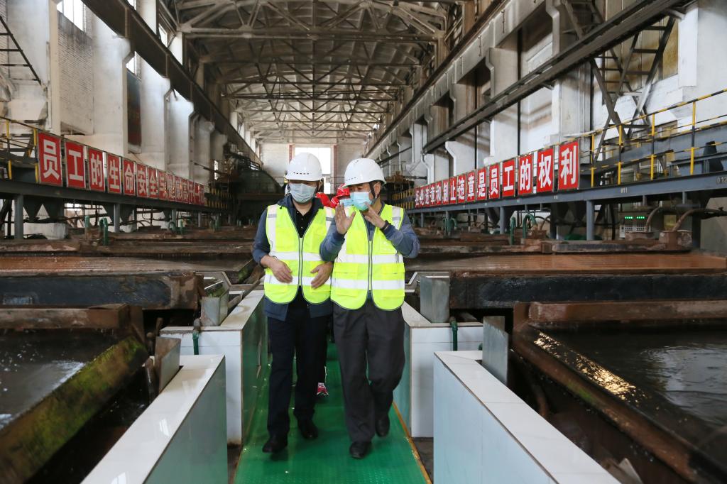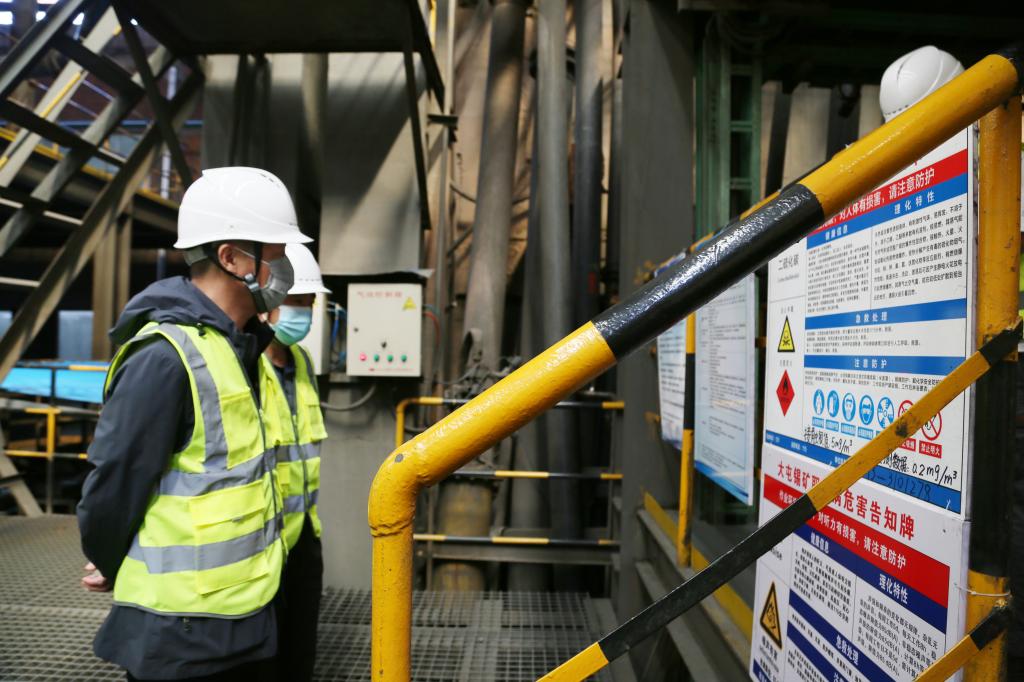 会前,调研组一行观看了大屯锡矿宣传片和安全教育警示片,穿戴好劳动防护用品后深入4000吨/日磨浮工段和硫重选工段,详细了解选矿工艺流程、生产规模、安全环保、职业病危害防护设备设施设置、岗位职业病危害告知、职工劳保物品佩戴等企业主体责任落实情况。