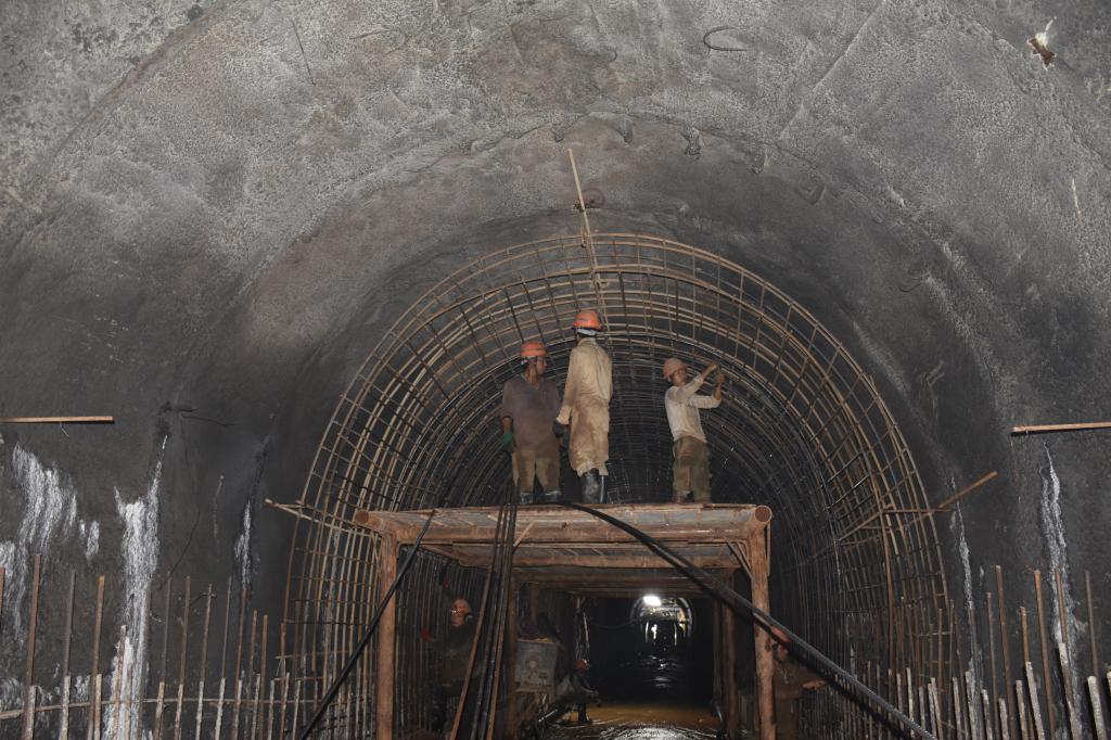 在排洪隧洞二次衬砌需要一次性成型浇筑时,大家站在水里接力把钢架钉进去,等浇筑完每个人累得碗都抬不动,脱水鞋时因为脚掌溃烂硬生生扯下一块皮来。看着这群平均年龄不足27岁的年轻人呲牙咧嘴的表情,项目经理赵云哽咽宣布“全体人员休假一天。”