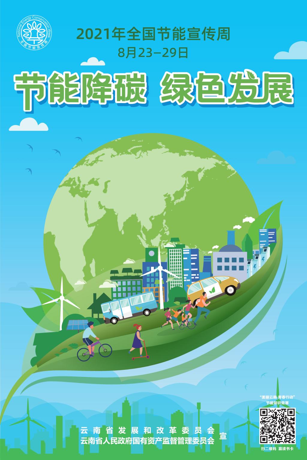 8月23日至8月29日为2021年全国节能宣传周,今年的活动主题是“节能降碳,绿色发展”。全司干部职工可通过扫描下图中的二维码,参与“美丽云南,青春行动”节能知识竞赛。