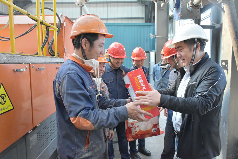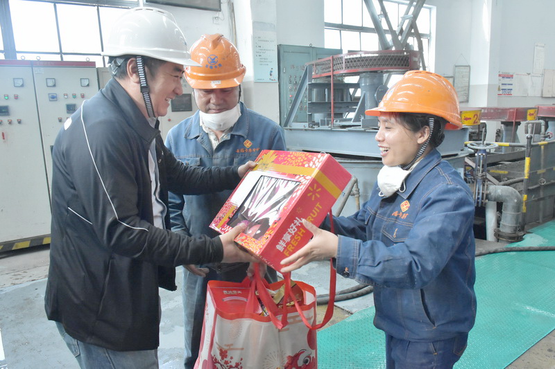 来到精炼车间值班室,程睿涵与一线员工亲切握手,送上新年的祝福。他说,冶炼分公司高效有序的生产离不开大家的辛苦付出和努力,在此祝愿大家和家人新春愉快,万事如意,也希望新的一年继续努力,履行好岗位职责,为实现锡冶炼顺利搬迁做出自己最大的贡献。