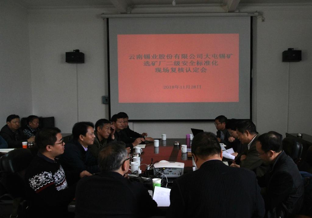 11月28日,云南省应急管理厅副处长李晓晨、丁武成,会同红河州、个旧市安全生产监督管理局等领导专家对大屯锡矿选厂片二级安全标准化运行情况进行现场复核认定。
