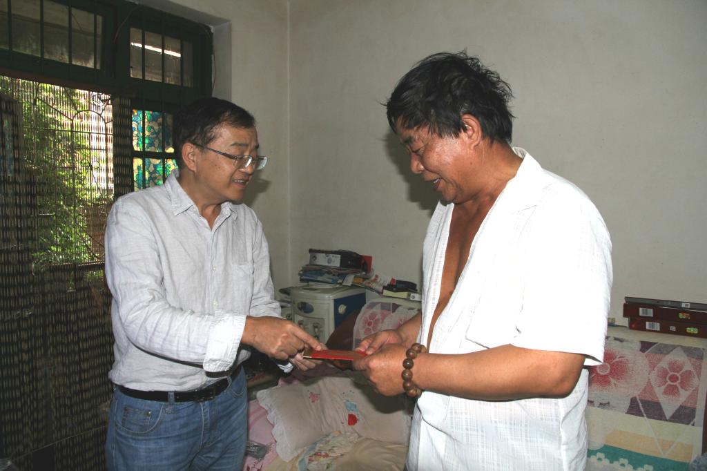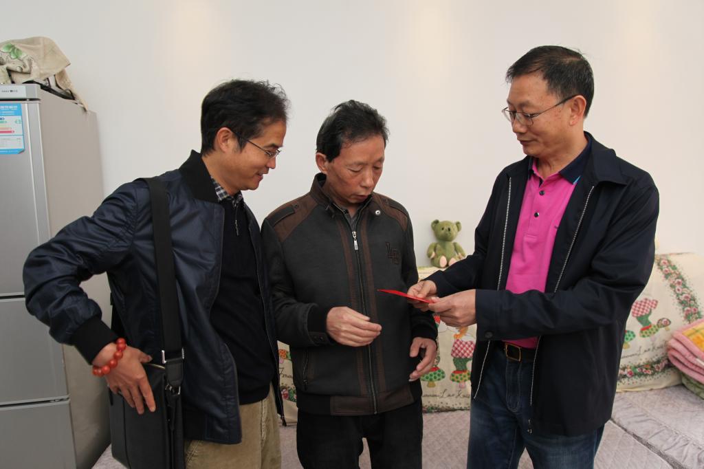 太阳集团tyc4633党委书记、董事长汤发走访慰问老厂分公司困难职工杨德能、李金荣、缪章禄。(李拉发/摄)