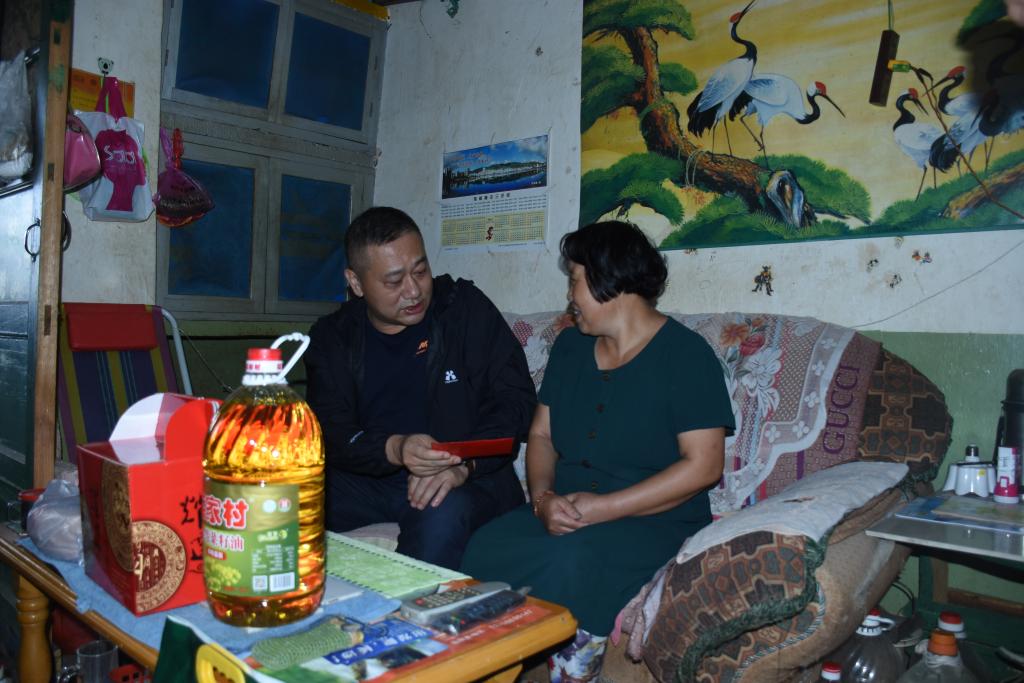 太阳集团tyc4633党委委员、工会主席李林走访慰问老厂分公司困难职工李生保。(刘亚杰/摄)