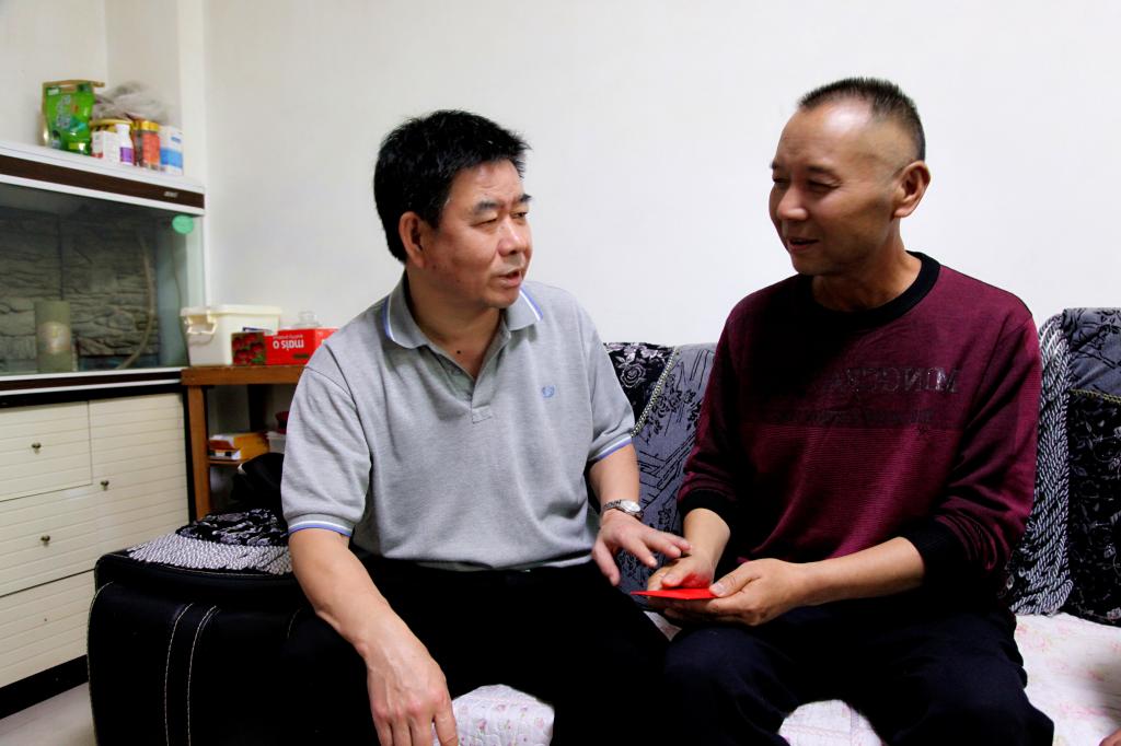 太阳集团tyc4633副总经理童祥走访慰问老厂分公司困难职工周金伟、董福信、罗国伟。(李拉发/摄)