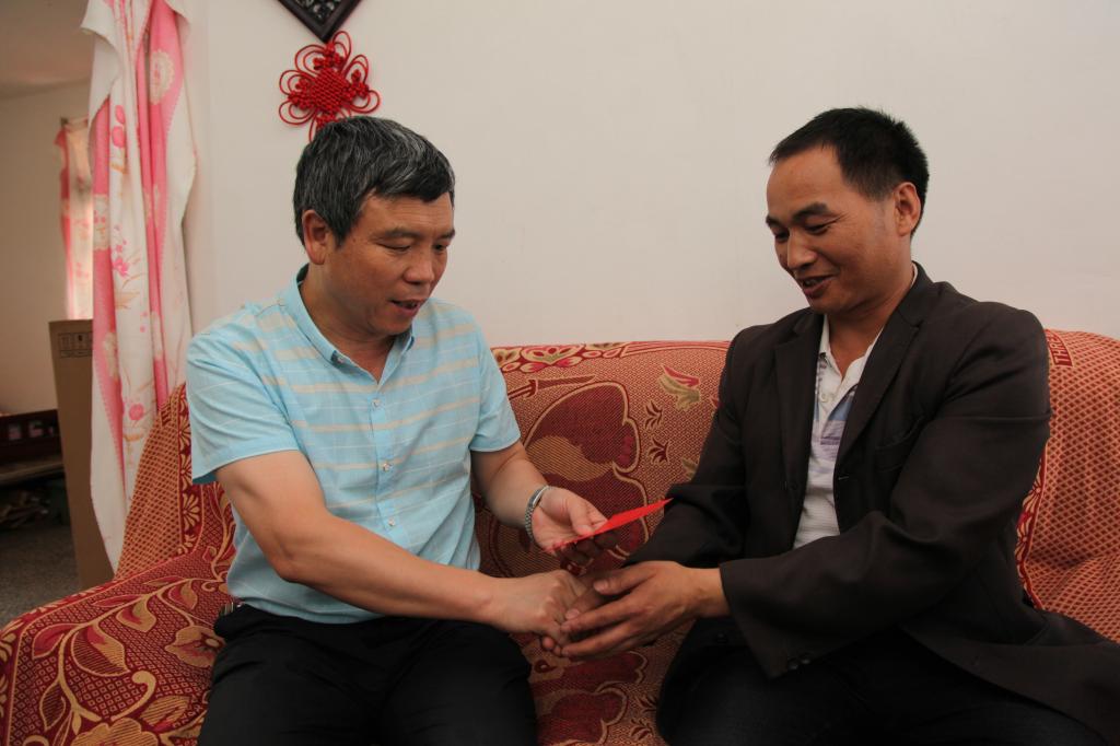 太阳集团tyc4633党委副书记、副董事长、总经理杨奕敏走访慰问卡房分公司困难职工杨元福、李嘎里。(陈 红/摄)
