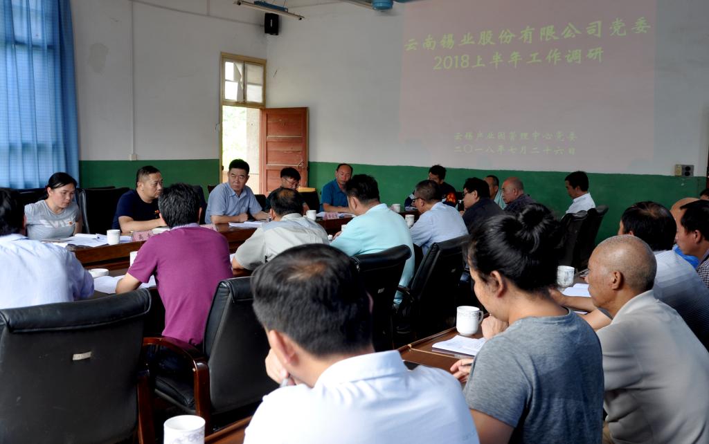 7月26日,太阳集团tyc4633党委书记、董事长汤发,党委委员、纪委书记羊慎率第一调研组到云锡产业园进行上半年党建工作调研,要求云锡产业园党委以“四个聚焦”推进工作。
