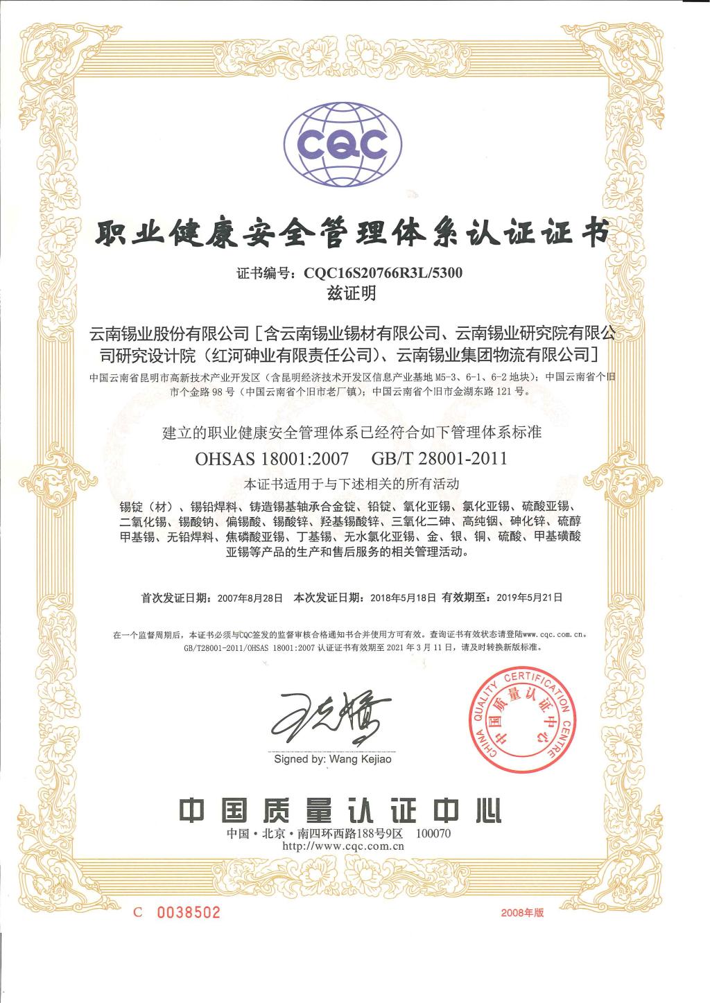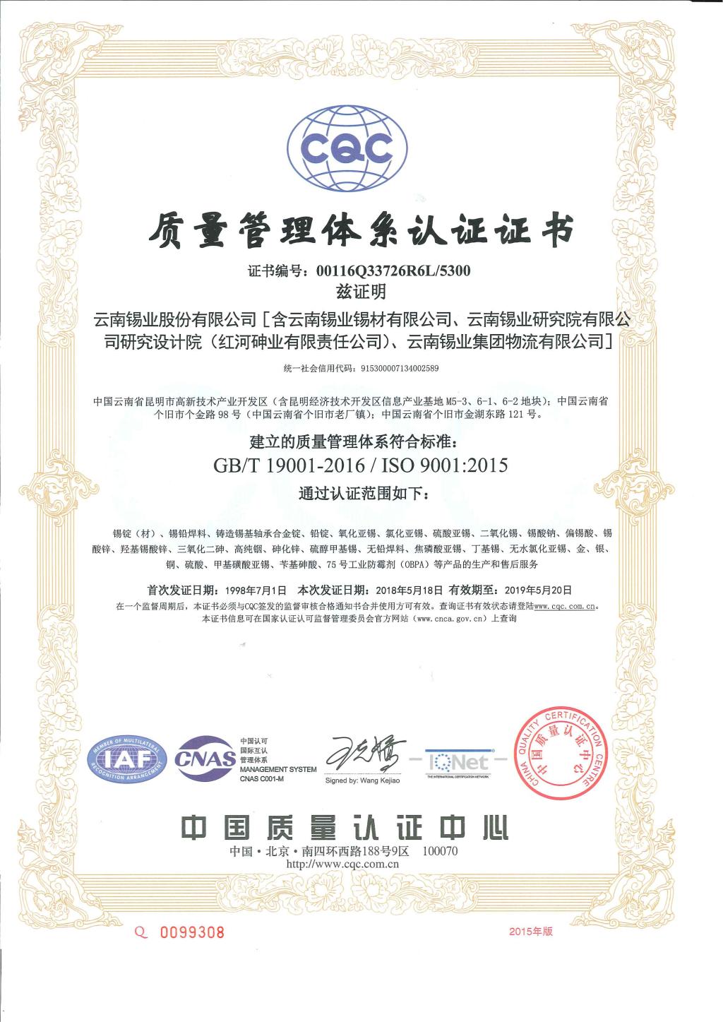 2017年,太阳集团tyc4633根据国家新发布的质量管理体系(GB/T 19001-2016/ISO 9001:2015)、环境管理体系(GB/T 24001-2016/ISO 14001:2015)标准要求,特邀中国质量认证中心CQC云南评审中心专家到公司,对体系覆盖单位的内审员、管理人员进行质量、环境管理体系新版标准及职业健康安全管理体系标准宣贯培训。随后,公司组织有关部门、单位根据新版标准要求识别公司的主要过程,建立高效简练的管理流程,针对可能存在的风险、机遇及后果,制定相应的控制措施以及量化的过程控制绩效指标,在中心老师的指导下,修改旧版文件形成新版管理体系文件发布实施。经公司内部试运行、内部审核及管理评审,2018年4月初通过中国质量认证中心CQC云南评审中心的换版认证现场审核及监督审核。
