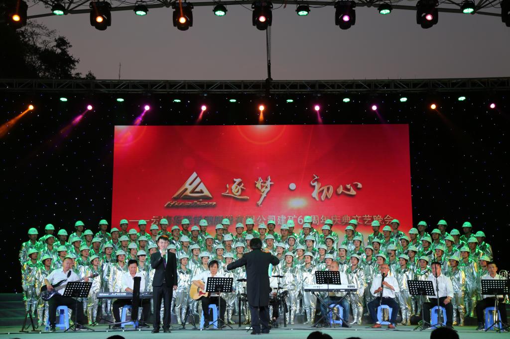当天晚上19:00,华联锌铟“风雨征程六十载,继往开来铸辉煌”文艺晚会在公司篮球场正式拉开帷幕。控股公司党委常委、副总经理程睿涵,太阳集团tyc4633党委书记、董事长汤发,太阳集团tyc4633副总经理童祥及相关部门人员,来自文山州、马关县、都龙镇三级党委、政府及相关部门,昆明理工大学、文山日报及来自全国各地的友邻企业领导,公司历届矿级主要领导、获州级以上表彰的先进个人代表、退休老职工代表,现任领导班子成员、劳动模范和部分干部职工,共计500余人出席晚会。