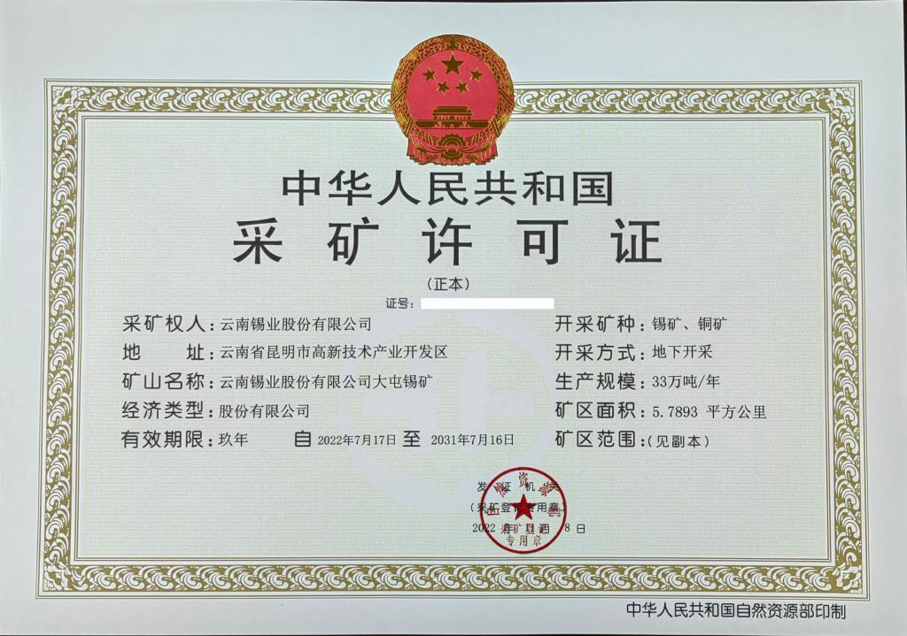 12月19日下午,大屯锡矿到北京取回采矿许可证,经过一年多的艰辛付出和努力,大屯锡矿矿权办理成功!