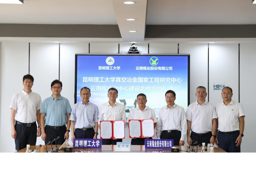 7月9日,真空冶金国家工程研究中心云南锡业分中心合作签约暨揭牌仪式在锡业分公司举行。云锡控股公司党委委员、副总经理宋兴诚,昆明理工大学党委常委、副校长杨斌为真空冶金国家工程研究中心云南锡业分中心揭牌。