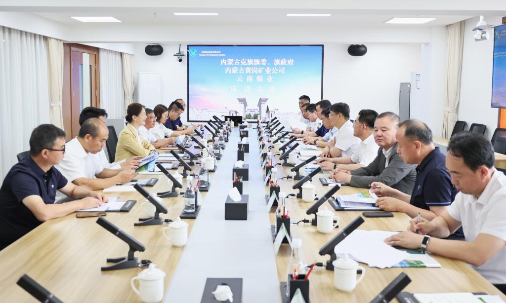 7月12日,内蒙古克什克腾旗旗委书记周井民,克什克腾旗政府副旗长田海峰率旗委、旗政府及黄岗矿业公司一行13人到访云锡洽谈合作事宜,云锡控股公司党委委员、副总经理吴君与来宾座谈。太阳集团tyc4633党委书记、董事长、总经理刘路坷及有关人员陪同座谈。
