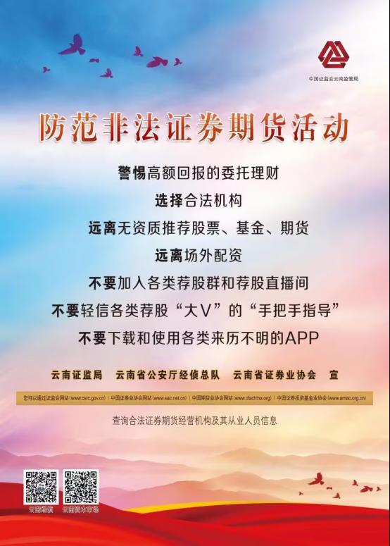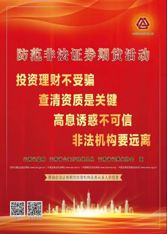 2023年第四届全国防范非法证券期货活动宣传月活动于5月正式开展。今年防非宣传月的主题是:深入贯彻党的二十大精神,发挥合法机构作用,抵制非法证券期货活动,减少投资者上当受骗。宣传标语是“投资理财不受骗,查清资质是关键”。