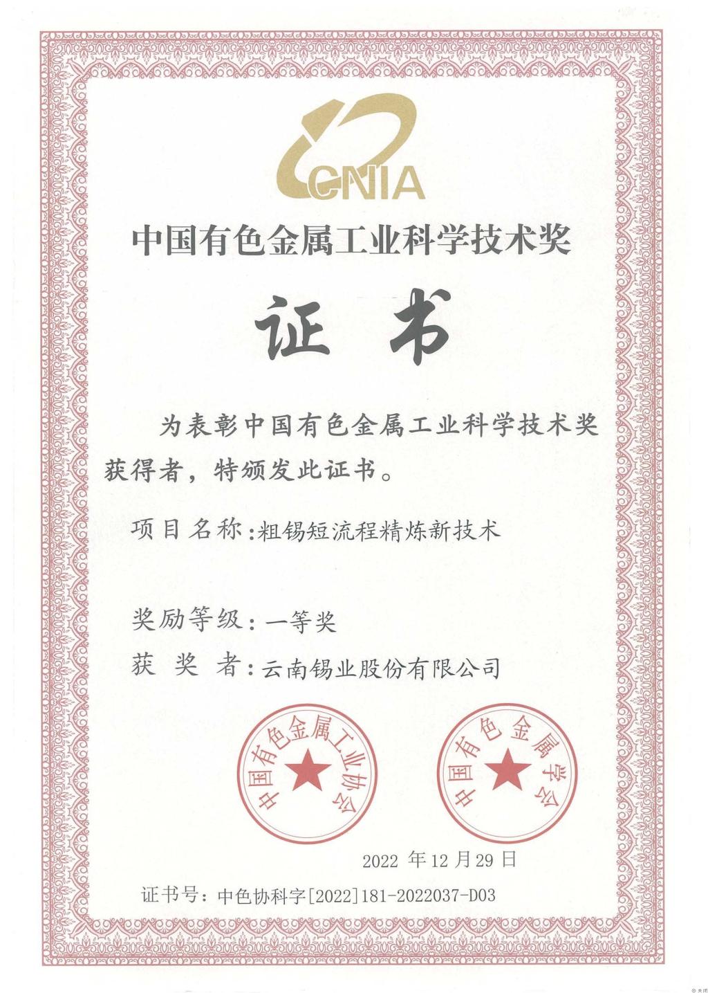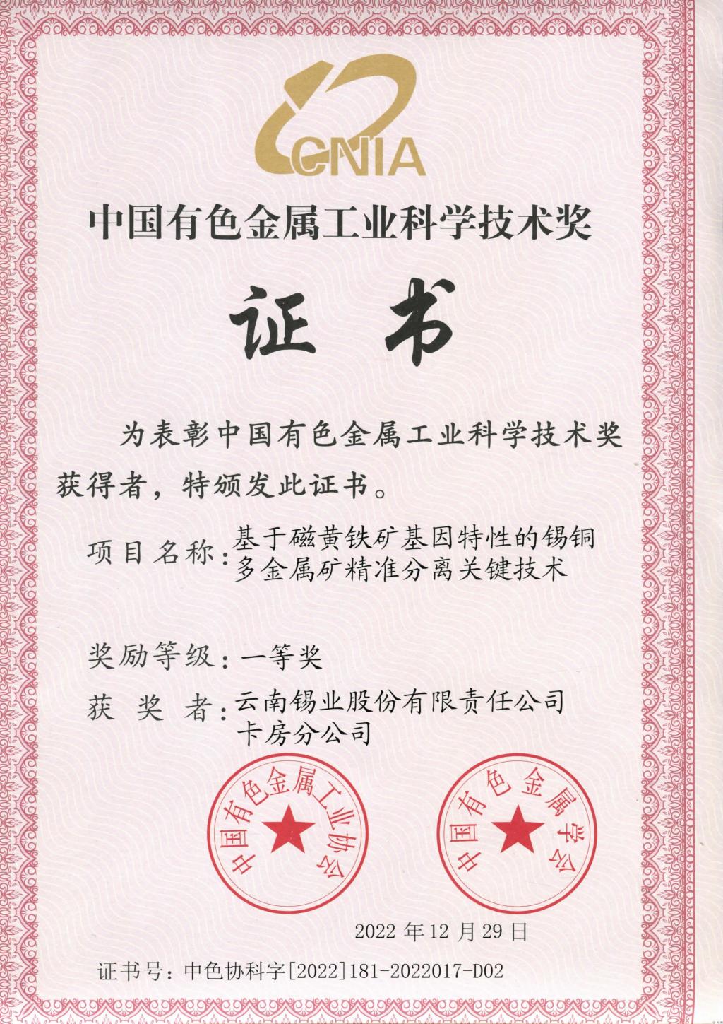 2022年,公司荣获省部级科技进步奖一等奖2项。