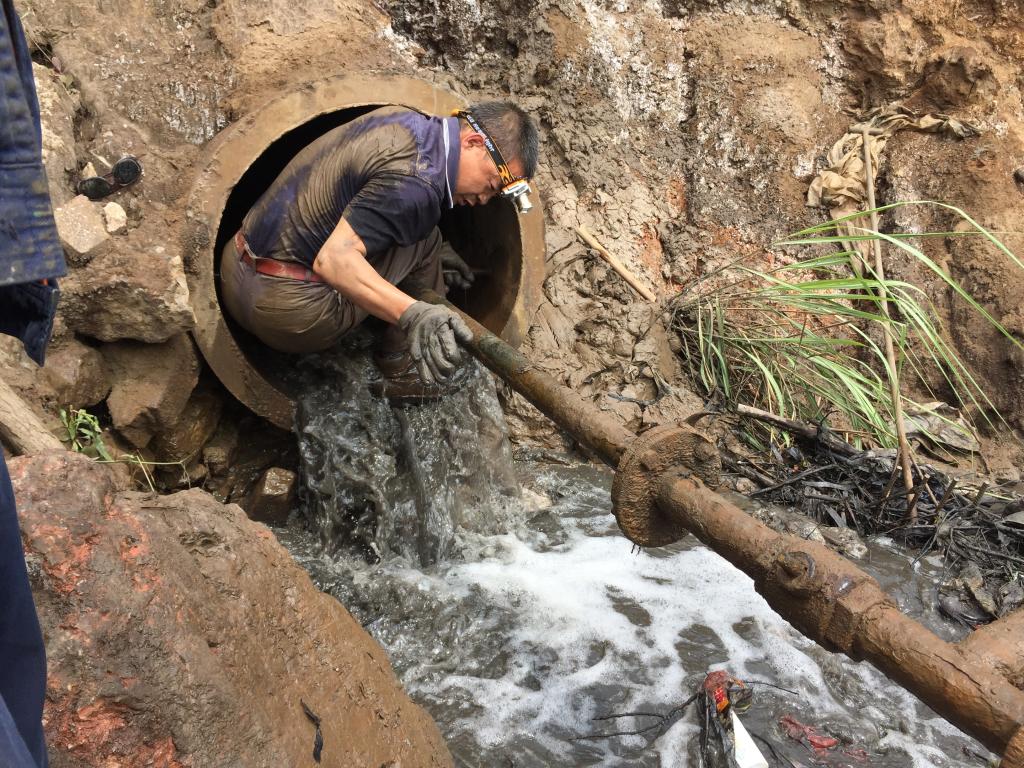 当天上午,在专业人员先用风机在暗沟中间通风口处灌风2个多小时和确认安全的前提下,10名共产党员带上工具,在工段长的带领下,依次连爬带跪地进入暗沟。由于暗沟空间狭窄,只能单人或爬、或跪、或蹲地作业,加之暗沟中安装有一根生产水管,增加了清理难度。清理过程中,污水湿透了大家的全身衣服,但没有一个党员怕苦叫累,前面的党员将堵塞物依次传给后面的,一点点地向前推进,几名身体残疾的党员也积极投入到清理工作中。