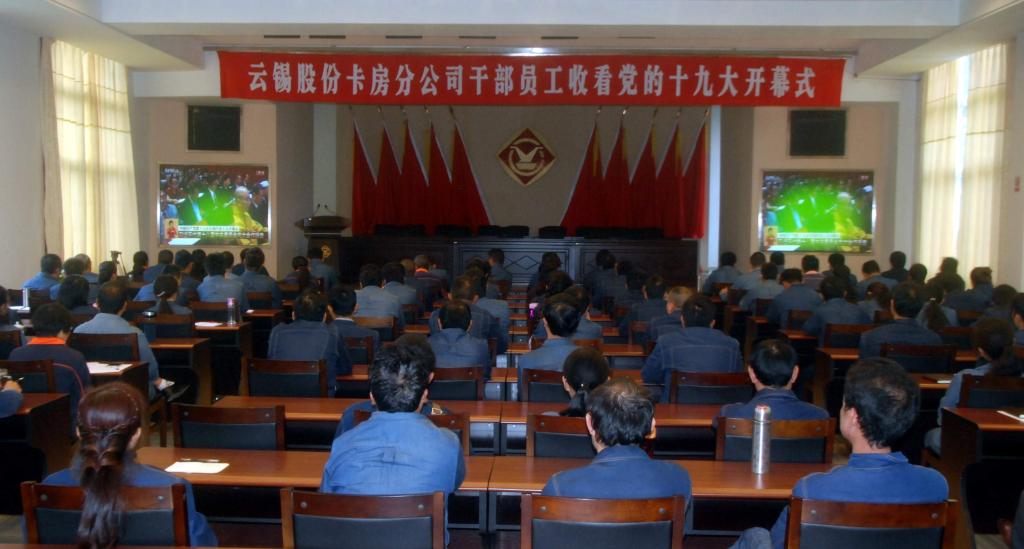 云锡控股公司和太阳集团tyc4633机关党员干部职工260余人在云锡宾馆报告厅进行了集中收看。两级公司领导班子成员与干部员工一起收看了党的十九大开幕会盛况。