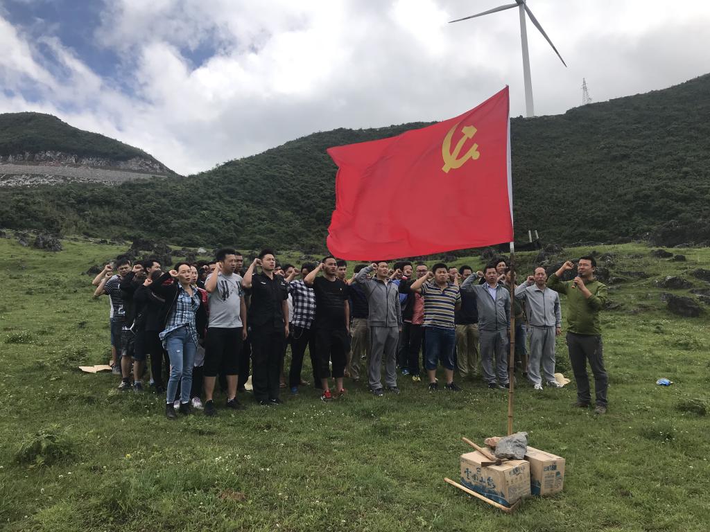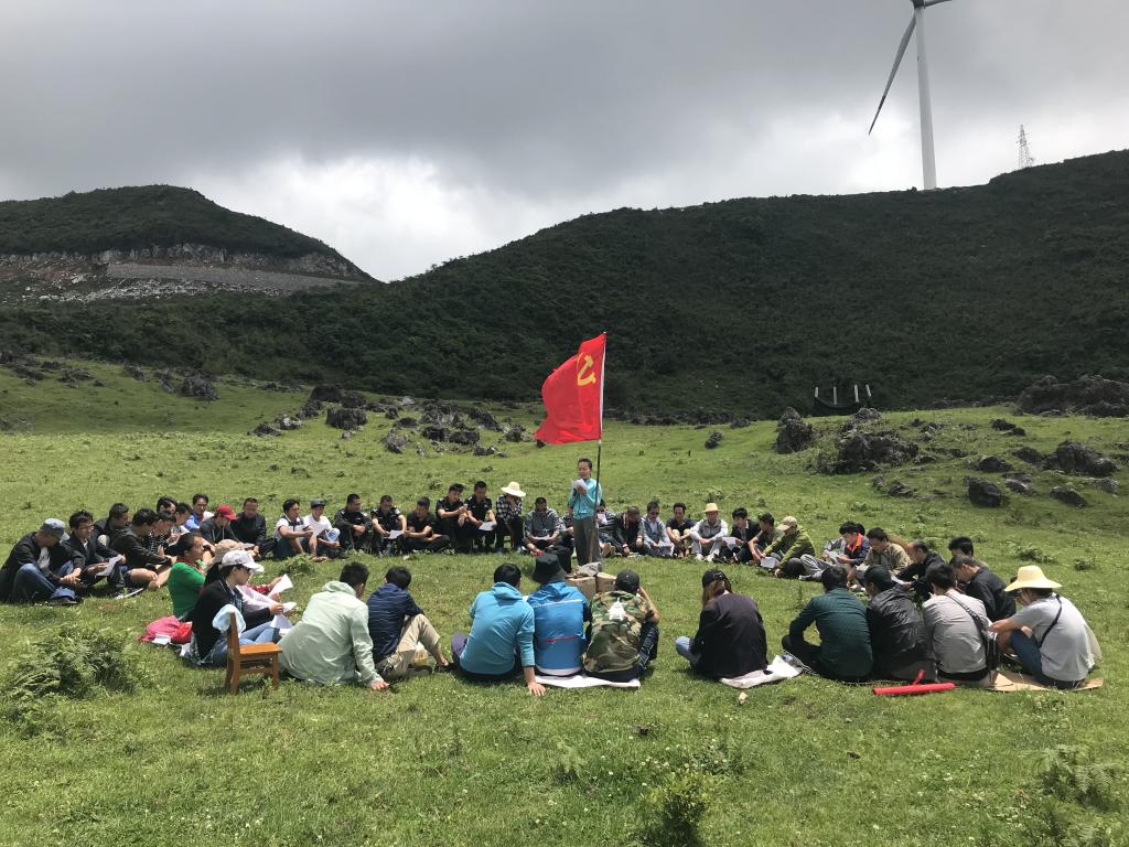 经过3个多小时的路程,到达了目的地。延绵不断的绿草地,抬手可触的天空,不远处悠悠转动的风力发电塔,让党员们异常兴奋。有的大口呼吸着新鲜空气,有的在绿地上随意奔跑,有的登高望远,有的不停摆造型自拍。一番开心后,蓝天白云下,党员们在鲜红的党旗前重温了入党誓词,并围坐在党旗周围齐声诵读党章、学习十九大知识,歌唱“没有共产党就没有新中国”“团结就是力量”。随后还开展了丢手绢、泡泡糖游戏,让大家重拾童趣、欢声笑语不断。