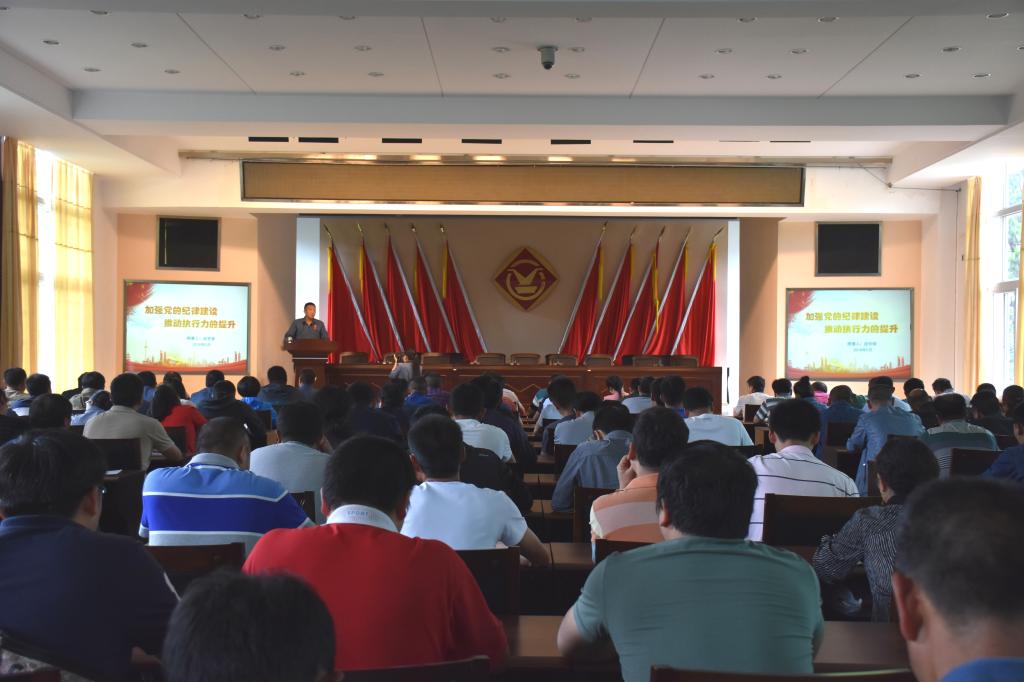 5月25日,在“六月党风廉政教育月”前夕,卡房分公司在五楼大会议室利用“支部大讲堂”强化党员干部的执纪教育。分公司纪委书记段学强以“加强党的纪律建设,推动执行力的提升”为主题,为140余名党员干部上了一堂严明党纪、廉洁从业的理论辅导课,教育引导党员干部要坚决维护党的纪律的严肃性,增强遵守党的纪律的自觉性。