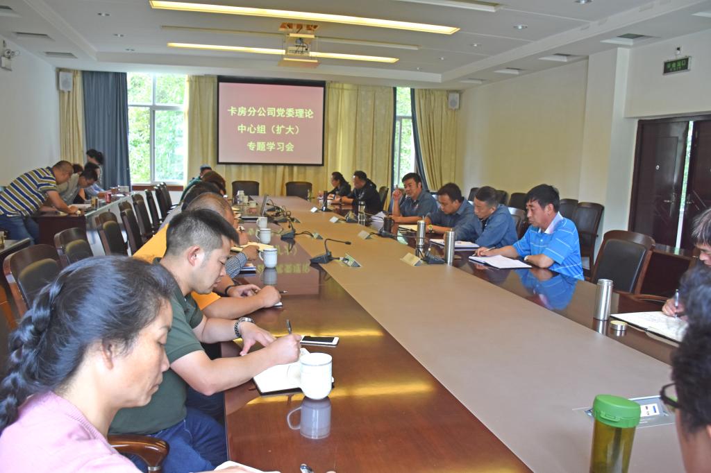 卡房分公司在家领导班子成员,各坑口车间党政负责人、机关党群部门负责人参加学习。