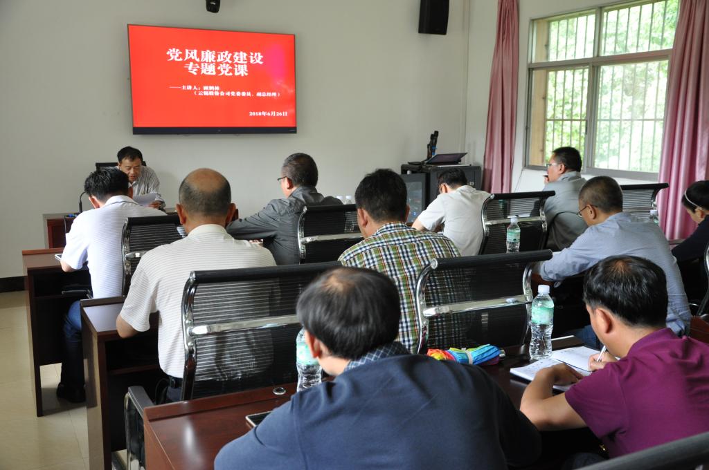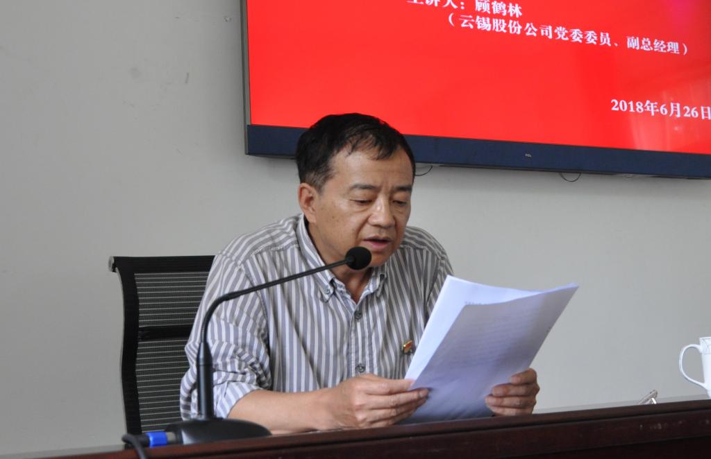 6月26日,太阳集团tyc4633党委委员、副总经理顾鹤林结合锡化工产业发展的实际,围绕如何“学懂弄通做实”十九大精神,以《践行十九大精神、做新时代党员》为主题,为化工材料分公司的党员干部讲了一堂党风廉政建设专题党课。
