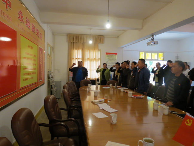 6月28日,老厂分公司马坑机关党支部开展以“牢记使命跟党走,奉献云锡创佳绩”为主题的党员政治生日活动,21名党员怀着激动的心情,面向鲜红的党旗,重温入党誓词,庄严宣誓。
