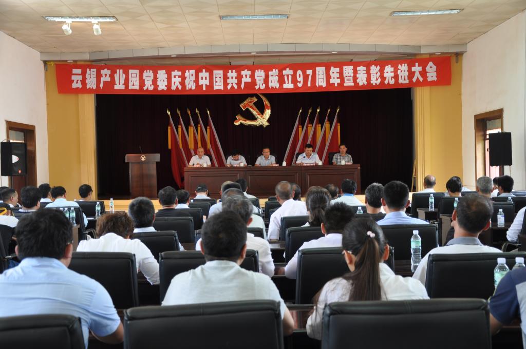 产业园管理中心党委书记郭建平在讲话中回顾了中国共产党97年的发展历程和辉煌成就,简要总结了云锡产业园党委两年来所做的工作。郭建平指出,两年来,党委和园内各单位领导班子坚定信心,统一思想,以务实创新的工作作风,团结和带领广大干部员工,顽强拼搏,止损减亏,在艰难中前行,在困境中奋斗,扎实开展系列主题实践活动,不断夯实了基层党组织建设的基础,两级党组织和共产党员的“三个”作用得到较好发挥。