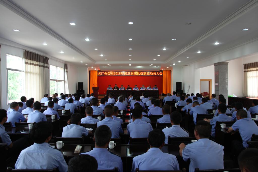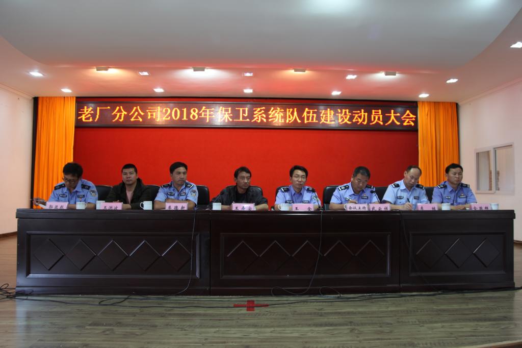 老厂分公司保卫部党支部书记武云祥宣读《2018年老厂分公司治安保卫队伍建设实施方案》;保卫部主任李德新对保卫系统人员提出工作要求;各坑口、车间保卫股长、队长作护厂护矿工作述职。