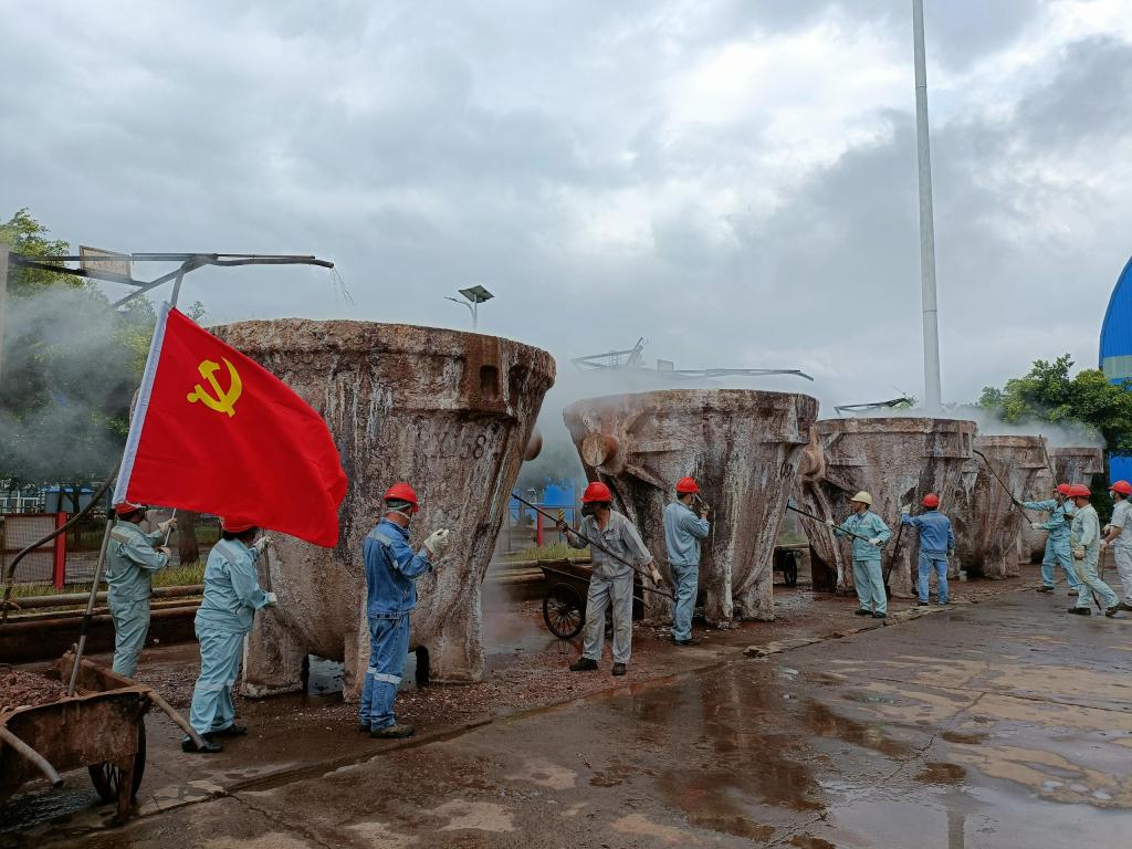 党支部“创新项目”—渣缓冷场循环喷淋水净化的研究。选矿车间党支部充分发挥“生产出题 党建解题”的作用,着力解决渣缓冷冷却水难冷却、管道结晶等堵点、卡点问题,成立支部创新项目研发小组,定期对水质、结晶取样化验分析,对所含元素、含量的高低、颜色等性质进行比对分析,找到管道易结晶的问题所在,通过深入研究、实验对比、参数控制等措施决定加装FBL过滤器。自设备安装投入使用后,渣缓冷水质明显改善,水看起来比以前更清了,管道结垢现象也有所缓解。