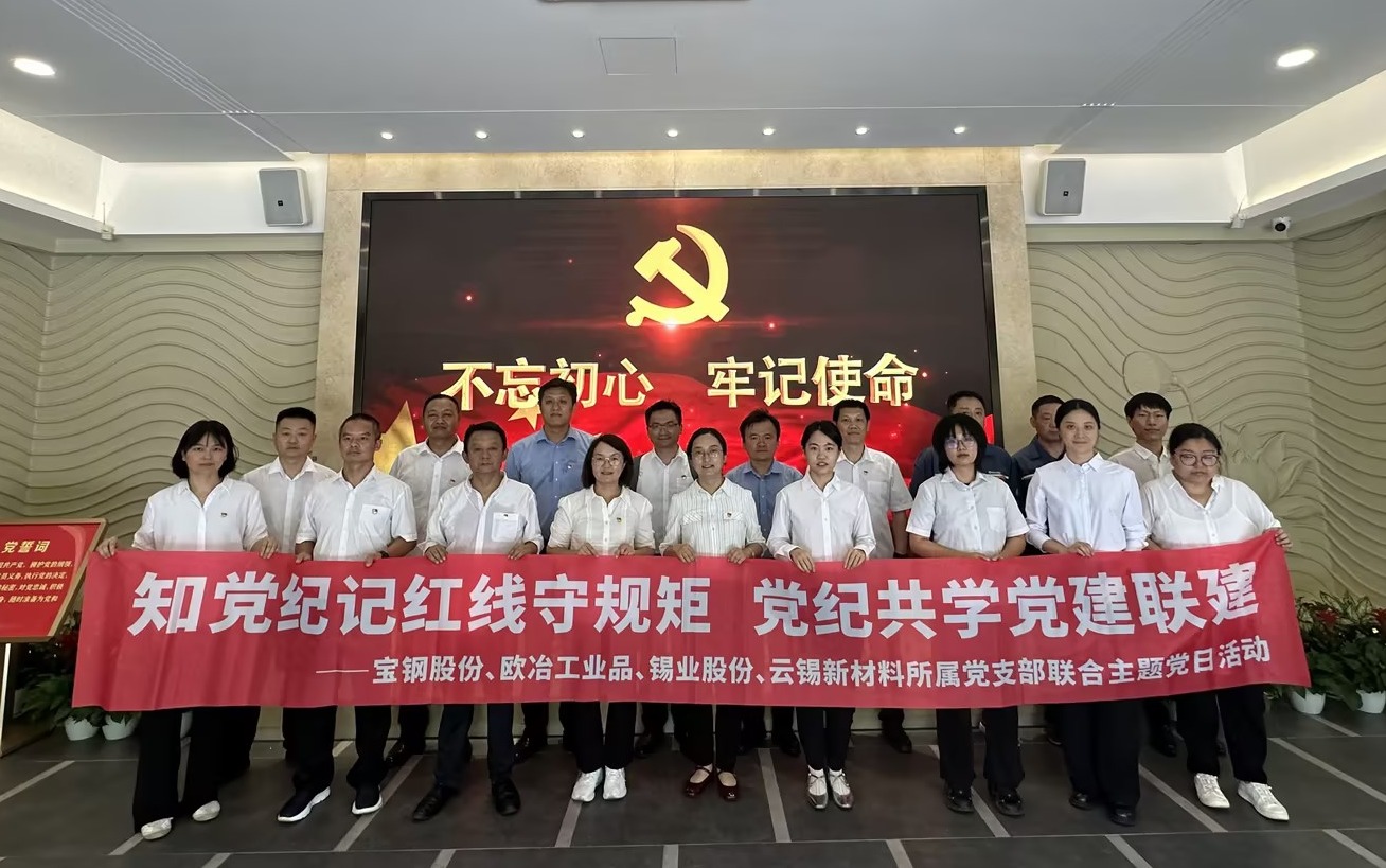 为持续深化产业链供应链创新链党建联建共建,在共建方党委共同统筹推动下,7月5日,云锡贸易(上海)有限公司党支部牵头,联合宝钢股份冷轧厂1420冷轧工场党支部,欧冶工业品资材品类党支部、平台运营中心党总支、欧冶采购党总支及云锡新材料营销第一党支部开展“知党纪记红线守规矩 党纪共学党建联建”主题党日活动。