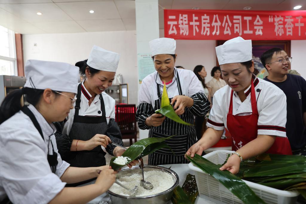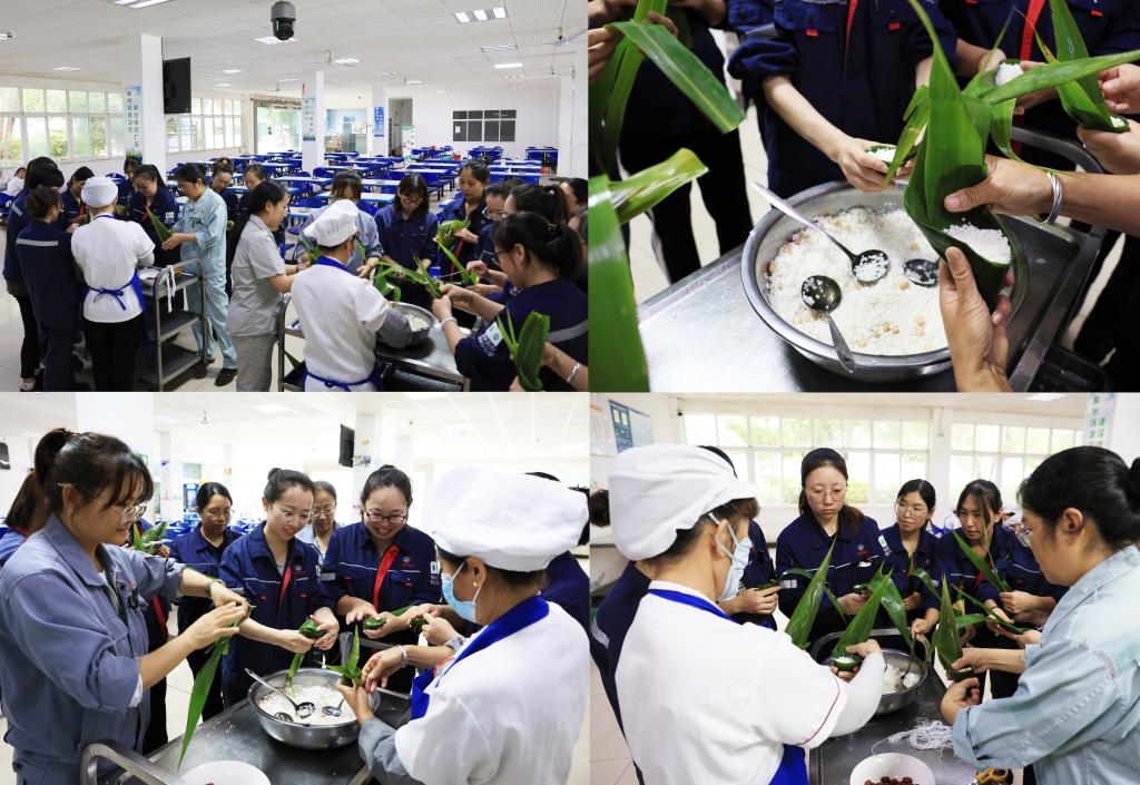 大屯锡矿后勤综治车间开展包粽子活动,通过认真挑选粽叶、包裹糯米和馅料、用绳子扎紧等环节,让职工切身感受包粽子的具体工艺技巧和中华传统节日的文化内涵。