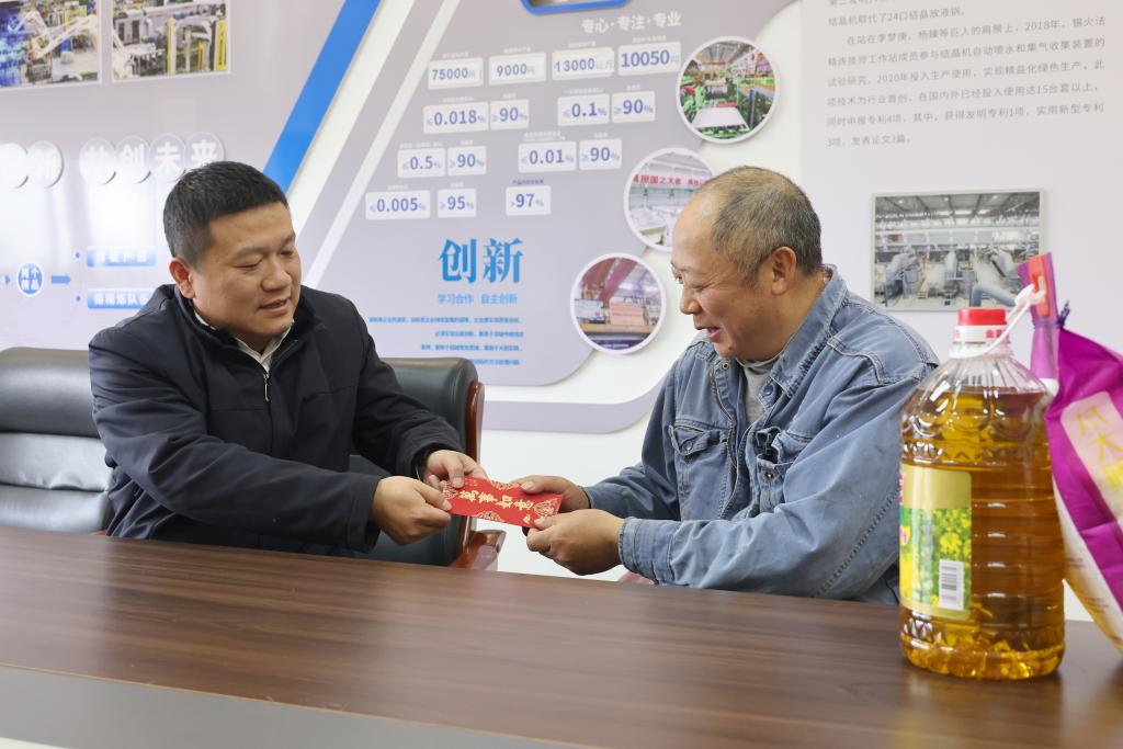 “过节好!提前给您和家人拜个年!”“现在身体怎么样?”家里还有什么困难?“孩子还有几年毕业?”……每到一处,声声问候,都如暖流般滋润人心;句句关怀,尽显情真意切。太阳集团tyc4633领导班子成员与慰问对象及其家属围坐一团,亲切交谈,细致入微地询问他们的身体状况、生活情况等,细心听取他们对公司发展的宝贵意见。公司领导感谢离休干部、老党员为公司发展做出的贡献,叮嘱他们保重身体,享受健康生活;向辛勤付出和无私奉献的劳模致以崇高敬意,希望他们继续发扬模范带头作用,在技术创新、攻关创效方面发光发热;鼓励困难职工、困难党员保持积极乐观向上的精神状态,相信在企业大家庭的帮助下,日子会过得越来越好。