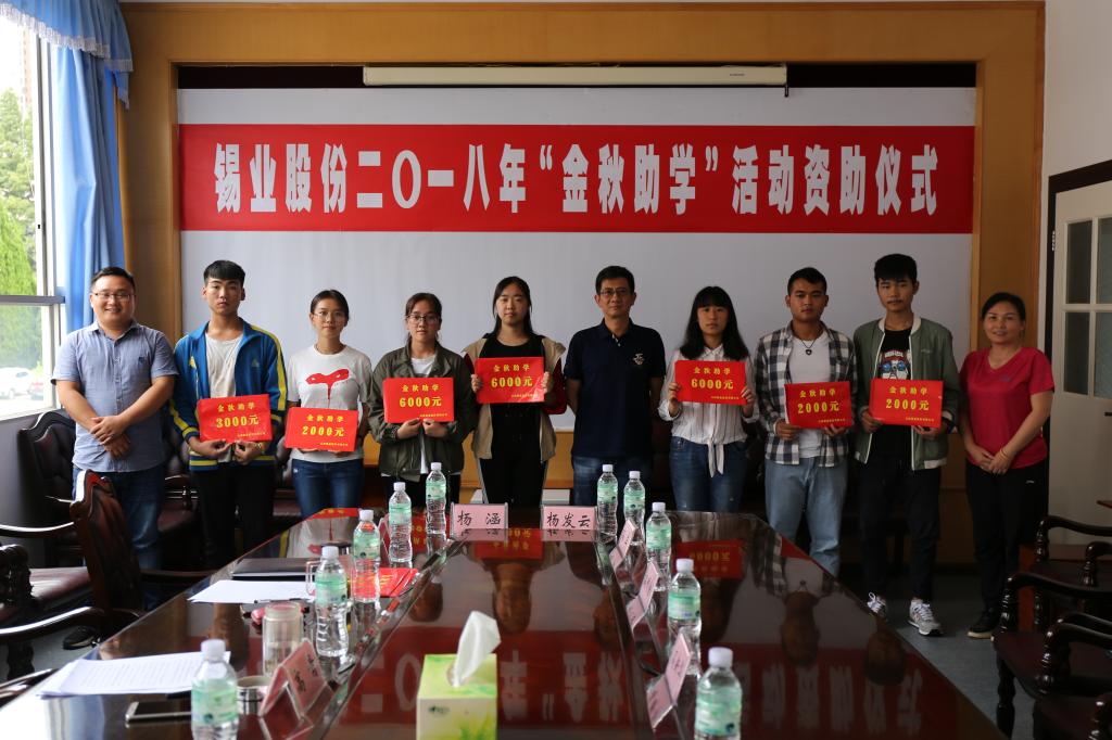 8月21日,太阳集团tyc4633在个旧举行2018年金秋助学资助仪式。太阳集团tyc4633党委委员、工会主席李林向取得优异成绩受到资助的大学生们表示亲切的问候和祝贺,希望他们把各级工会组织的关爱转化成精神动力,克服学习和生活中的各种困难,在崭新的人生舞台上,唱响最华美的乐章。