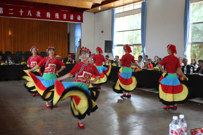 随后,还进行了文艺表演,把助残日活动推向了高潮。老厂政企、农村的群众演员表演了《舞龙》《士兵小唱》《彩云之南》《彝家狂欢》等精彩的歌舞节目;个旧市残联志愿者表演了手语《最好的未来》,用无声的语言表达了对美好未来的憧憬和向往;羊坝底福利厂残疾职工独唱歌曲《母亲》,抒发了对社会、对残疾人的感激之情,整场精彩的表演,赢得了观众雷鸣般的掌声。